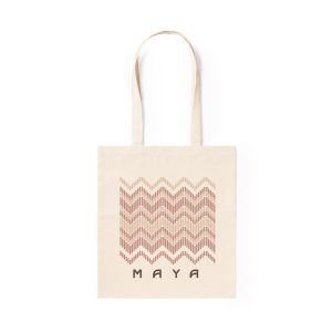 Saco em material 100% algodão reciclado de 120 g/m2. Asas longas de 70 cm com reforço e de acabamento cosido. Distintivo na etiqueta lateral e resistência até 8 kg de peso. Disponível numa variada gama de cores nature com base de cor natural.